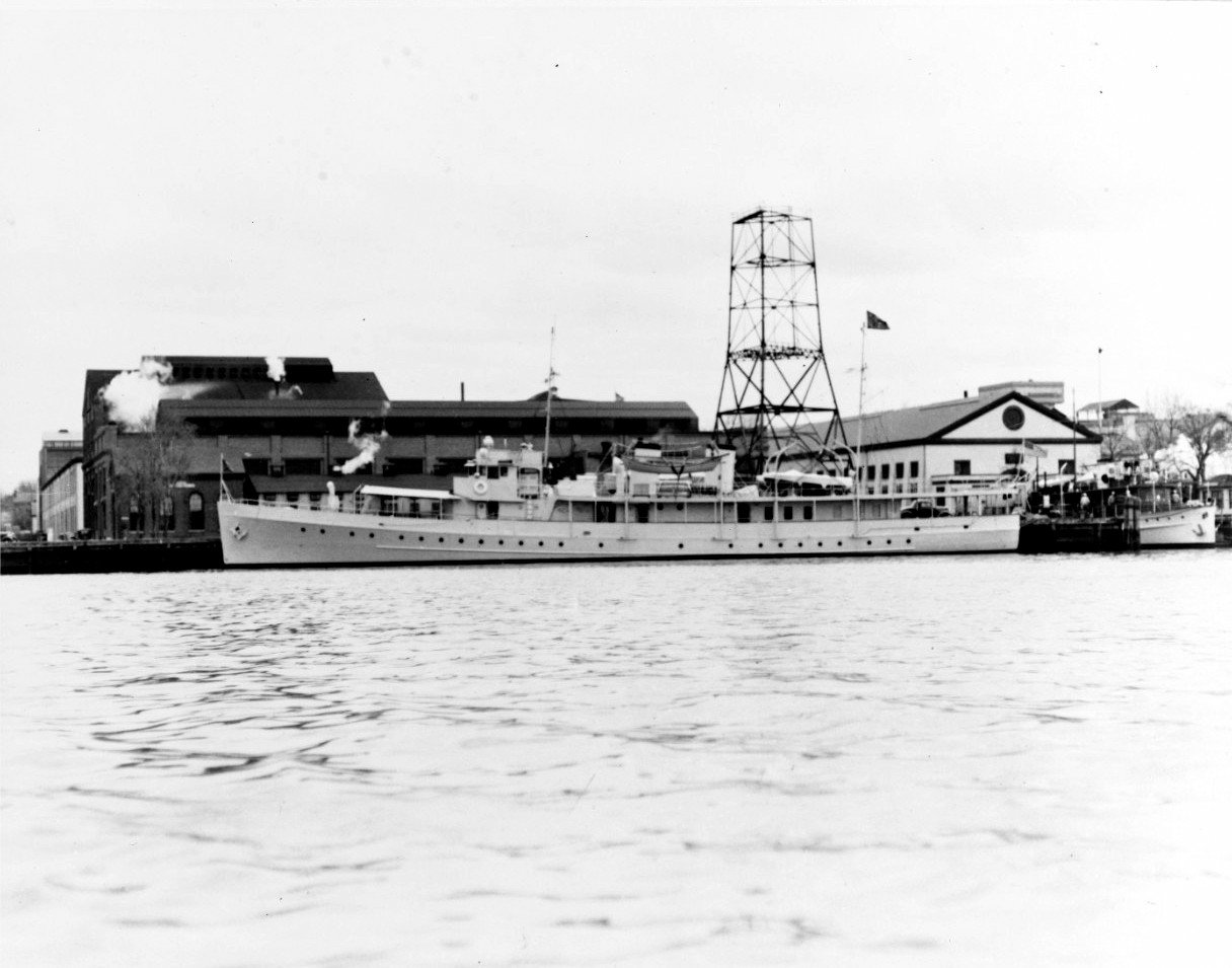 108k | USS Potomac (AG-25) under way near the Norfolk Navy Yard, Portsmouth, VA., 13 April 1936, soon after conversion from a Coast