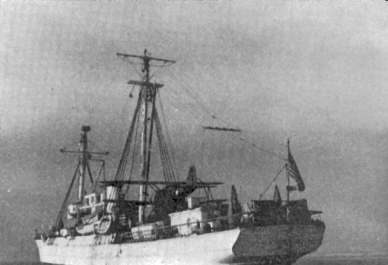 113k | SS Bear of Oakland under way around the time of her Antarctic expedition of January 1934. Photo courtesy Haze Gray & underway. |