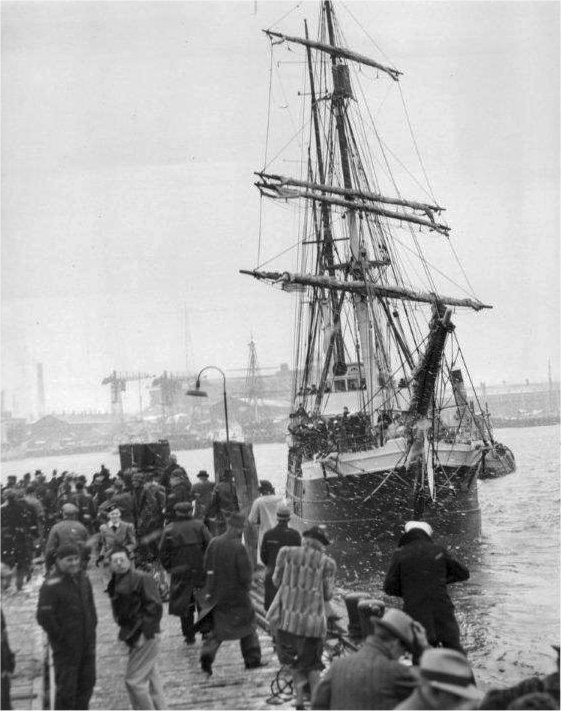 81k | Ex-USCGC Bear in service as SS Bear of Oakland sails from Boston in the snow, 12 November 1930, enroute to the Antarctic to joint the Byrd Expedition. Acme photo. |