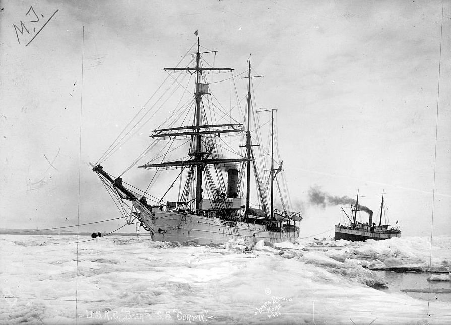 110k | USRC Bear and SS Corwin in the roadstead, Nome, Alaska shortly after their arrival on 1 June 1914 Library of Congress # LC-H61-6165 |