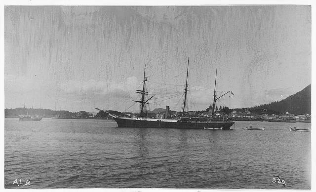 49k | Port side view of USRC Bear anchored at Sitka, Territory of Alaska, circa 1890s. | Tommy Trampp | |