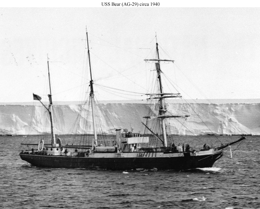 139k | USS Bear (AG-29) underway during the 1939-1940 Antarctic expedition led by Rear Admiral Richard E. Byrd. The relatively short