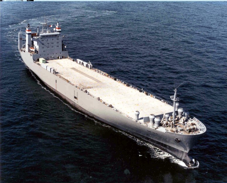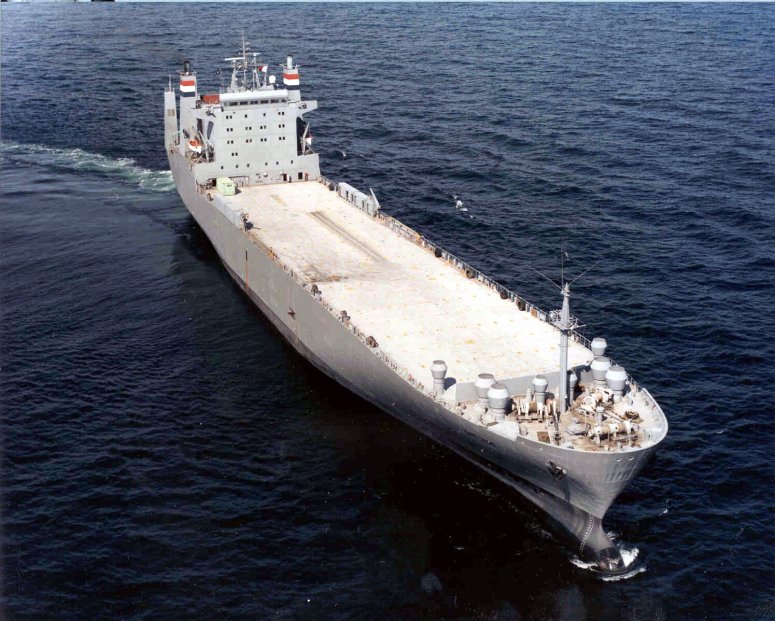 MV Cape Texas (AKR-112) moored in her layberth at Houston. TX., date unknown. Photo courtesy of Steve Vaughn. MSC Website. |