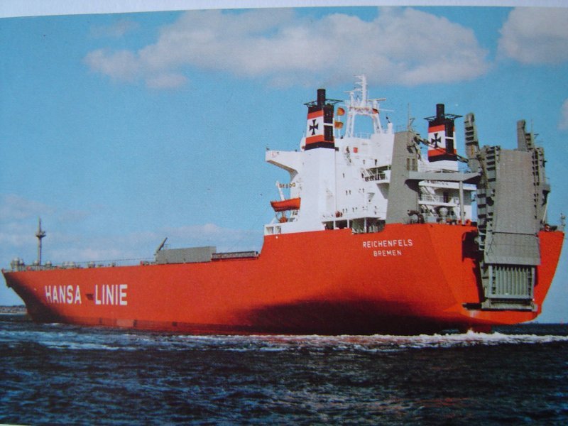 MV Reichenfels underway while in service as a DDG Hansa - Line, Ro-Ro ship German flagged, date and location unknown. Photo ©DDG Hansa. |