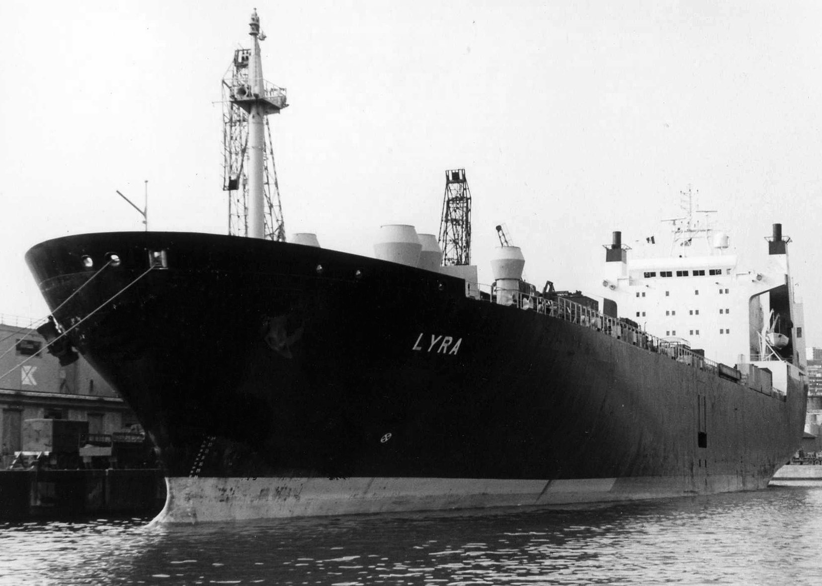 MV Lyra moored pierside at Genoa, Italy, 9 September 1986. |