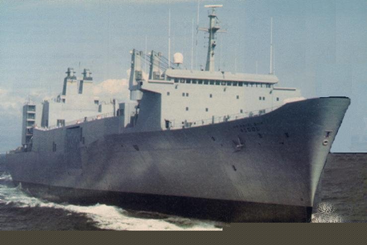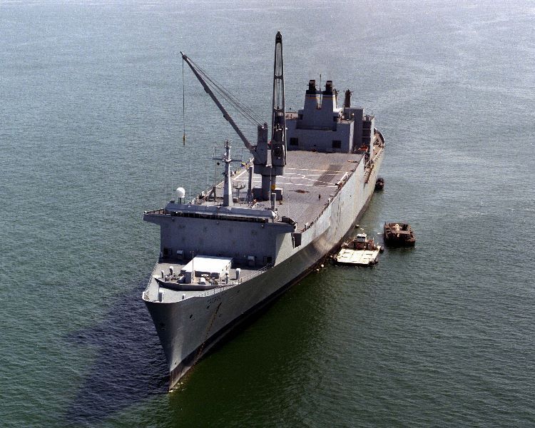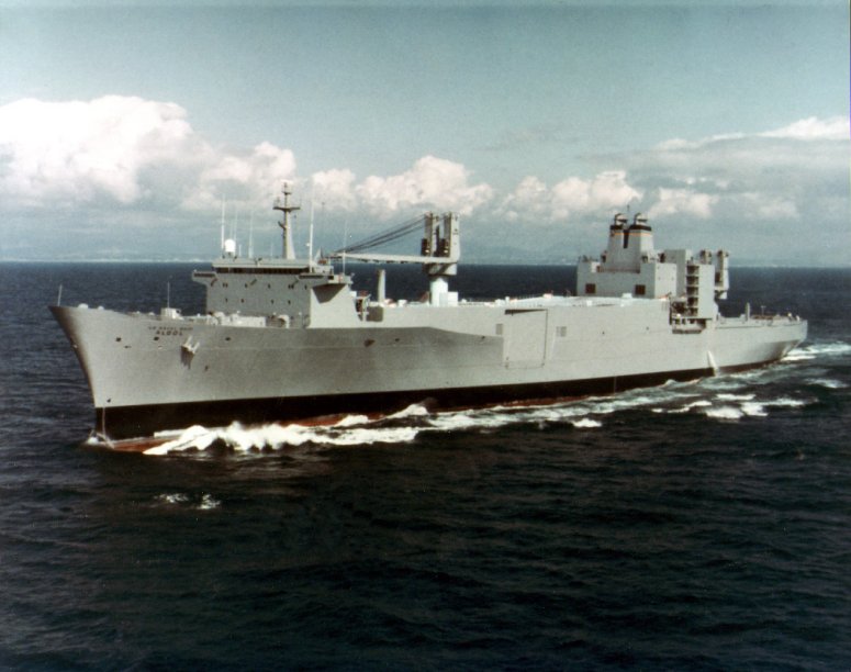 76k | USNS Algol (T-AKR-287) at anchor, off-loading vehicles and equipment, date unknown. US Navy photo |