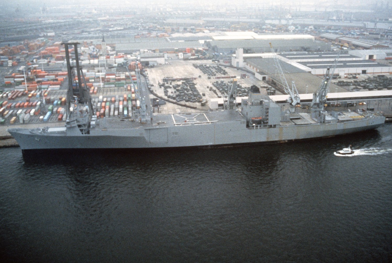 326k | USNS Algol (T-AKR-287) in port Antwerp, Belgium, 1 September 1984 while unloading equipment during Exercise REFORGER '84.. Department of Defense photo # DA-ST-85-12944 ANTWERP, Belgium (11 September 1984), a US Army photo now in the collections of Defense Imagery.mil |