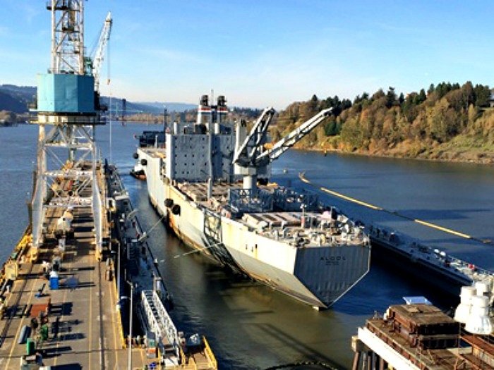 93k | USNS Algol (T-AKR-287), the first ship to dock in Vigor Industries new $50 million dock, Vigorous at Portland, OR., 25 November 2013 | Photo by Peter Westdijk the Netherlands | |