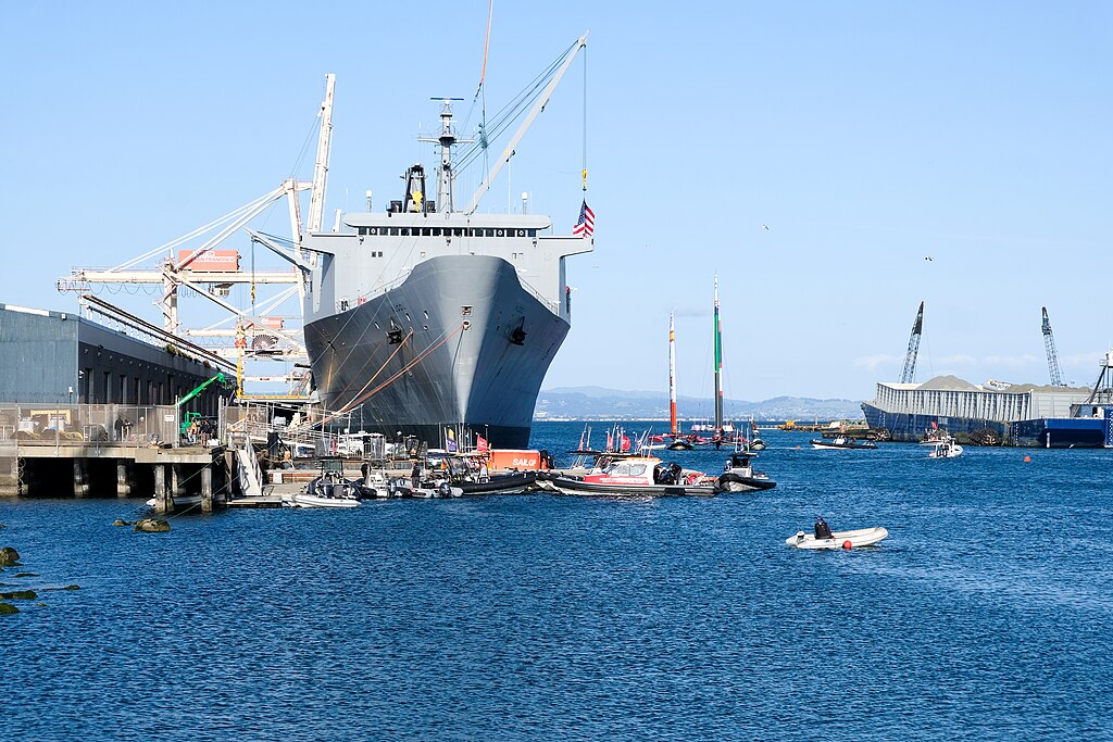 218k | SS Algol (AKR-287) moored pierside at Alameda, CA., 7 May 2023. Photo taken during the SailGP Season 3 Grand Final.