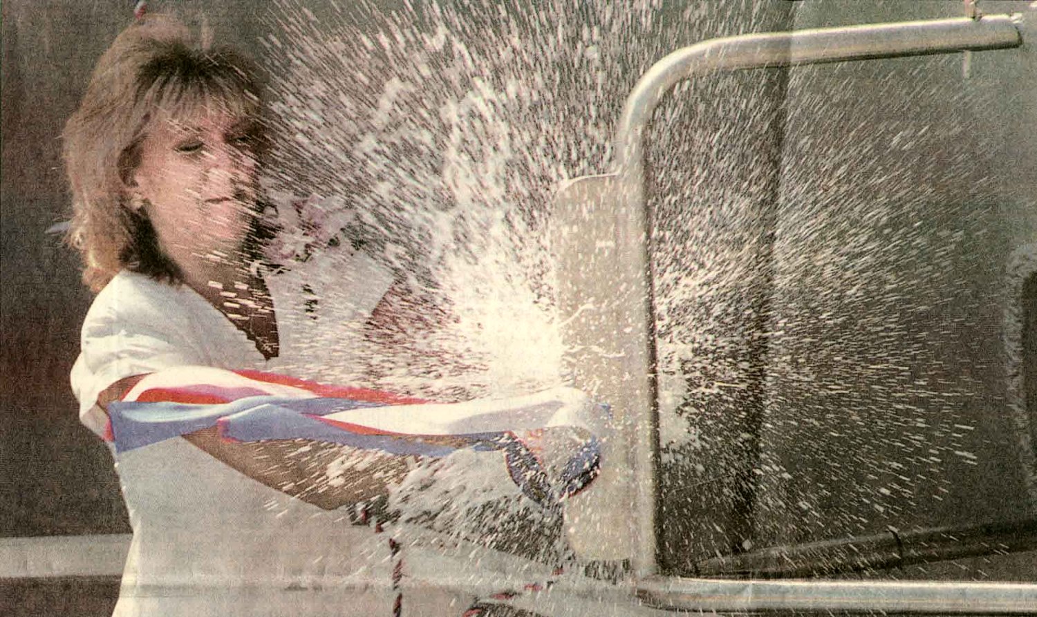 345k | Christening by Mrs. Carmen Gordon, widow of Master Sergeant Gary I. Gordon of USNS Gordon (T-AKR-296) at Newport News Shipbuilding and Dry Dock Co., Newport News, VA. 4 July 1996 | Dale Hargrave | ||