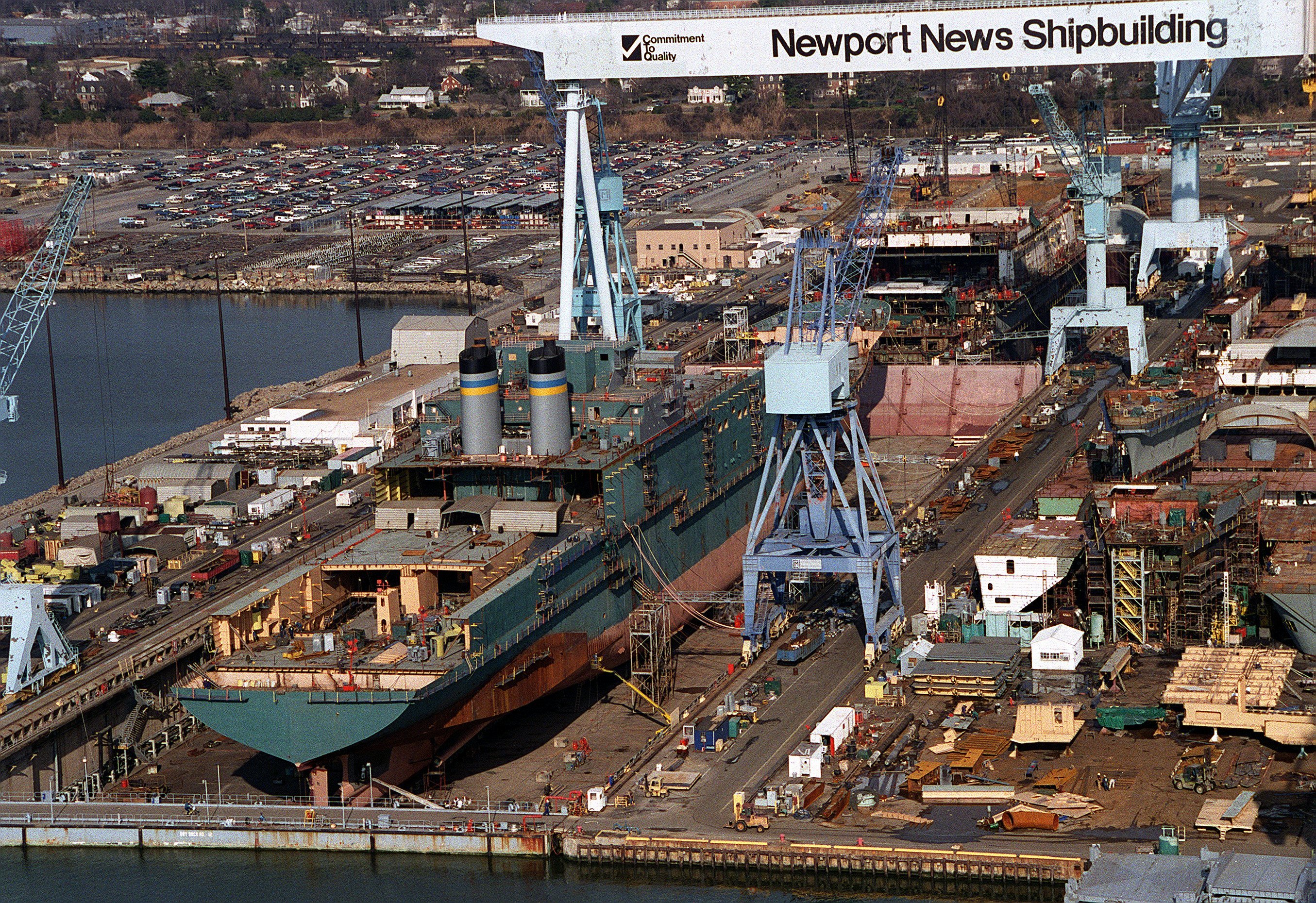 conversion in drydock #12 at Newport News Shipbuilding and Dry Dock Corp.. Newport News, VA., 20 February 1995 . Forward of Gordon is the amidships section of the nuclear