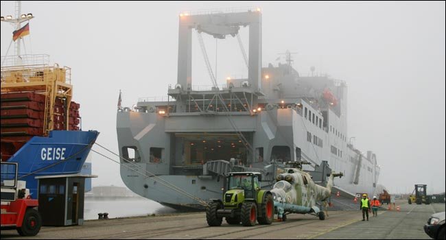 39k | USNS Fisher (T-AKR-301) unloads Polish army equipment for reloading aboard the German cargo ship MS Geise in Germany for transport to Poland, 21 December 2007. The 65 pieces of Polish equipment along with 850 pieces of equipment from the U.S. Army's 1st Infantry Division, 2nd Brigade Combat Team, was returning from Southwest Asia. The equipment was moved with the assistance of personnel from Army Surface Deployment and Distribution Command?s 950th Transportation Company.US Navy photo by Bram de Jong. | Lee Wahler | |
