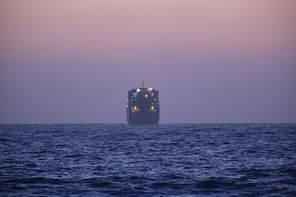 k | USNS Benavidez (T-AKR-306) in front of the Ashdod Yam Fortress Beach, departing from / approaching the Port of Ashdod, Isreal, 1 July 2024.