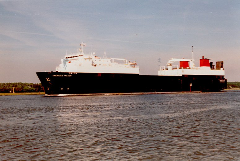81k | MV American Falcon (AKR-9672) under way in the Amsterdam ship canal, date unknown. | Photo by Peter Westdijk, the Netherlands | |