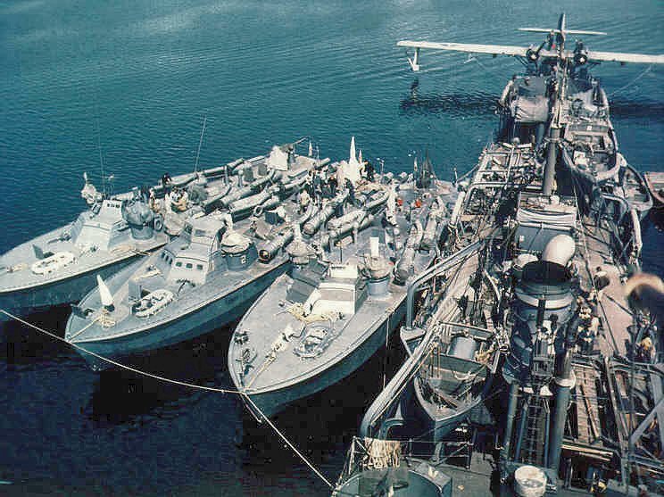 125k | USS Gillis (AVD-12) tending Motor Torpedo Boat Squadron 13 boats