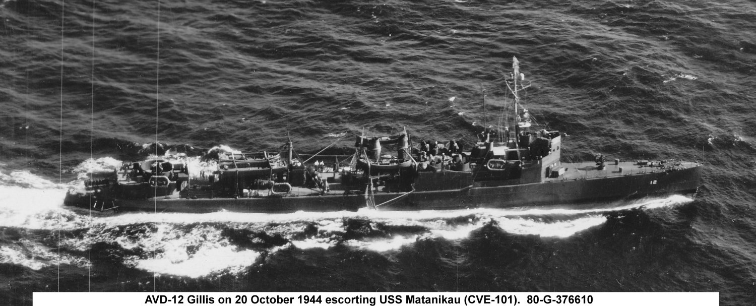 112k | USS Gillis (AVD-12) escorting USS Takanis Bay (CVE-89),