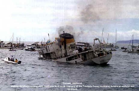 Ex-HMNZS Tui (ex Charles H Davis) sinking at Tutukaka NZ, 20 February 1999. |