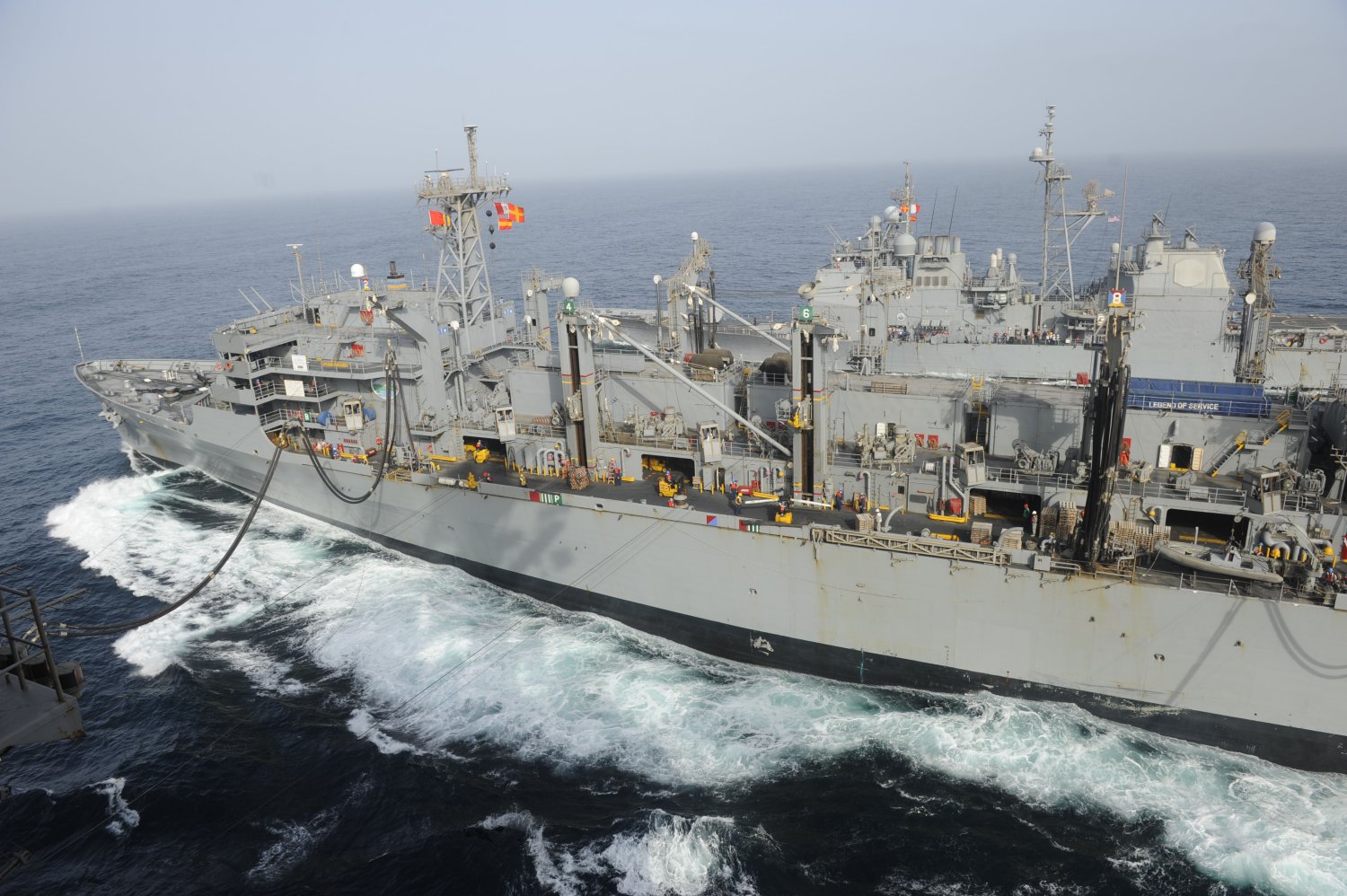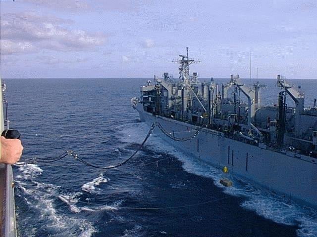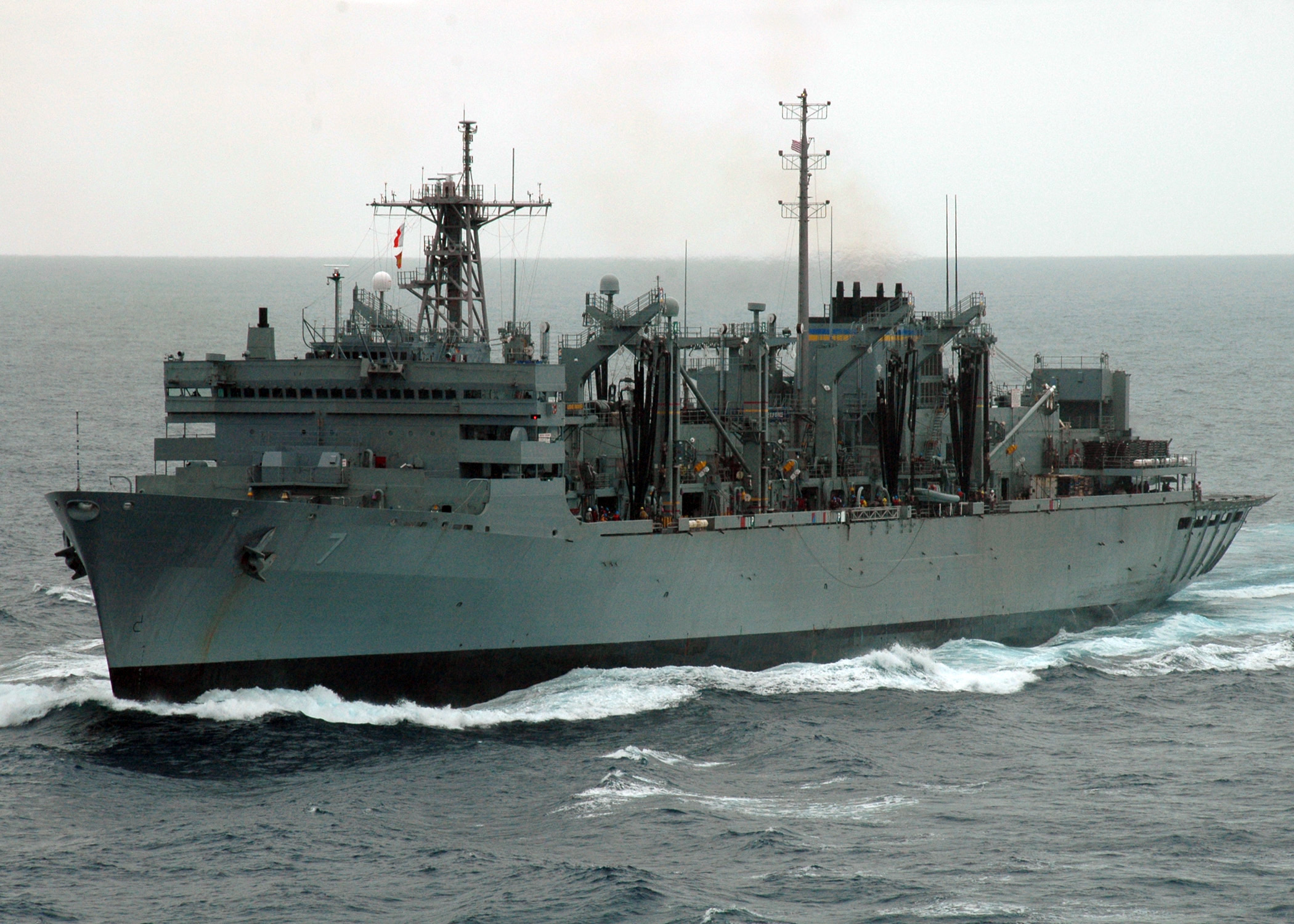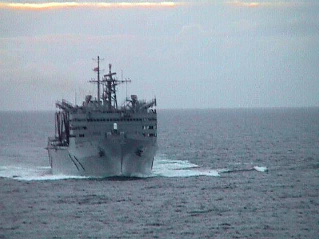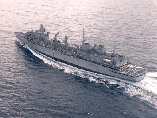 84k | USNS Rainier (T-AOE-7) during an underway refueling of USS Ardent (MCM-12), 4 April 2006, location unknown. US Navy photo. |
