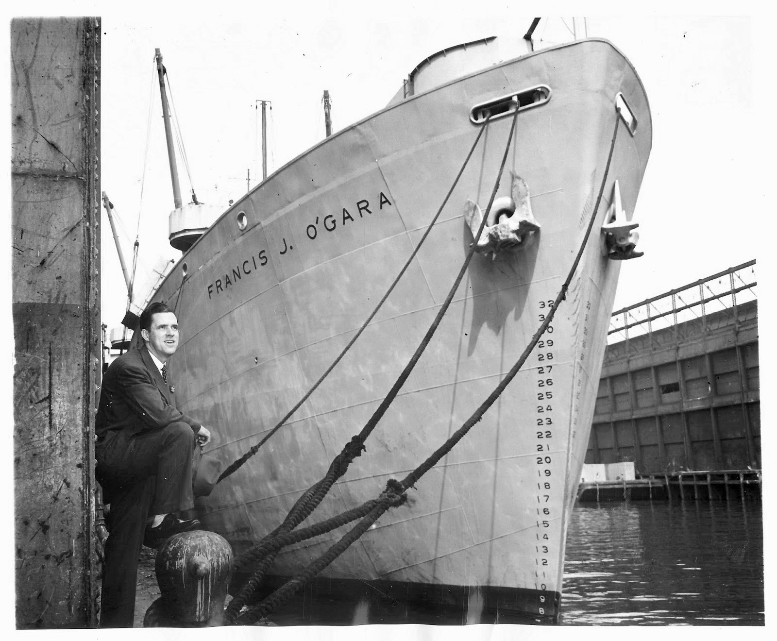 295k | SS Francis J. O'Gara moored pierside, date and location unknown. Francis J. O'Gara is standing on the pier. O"Gara was a POW