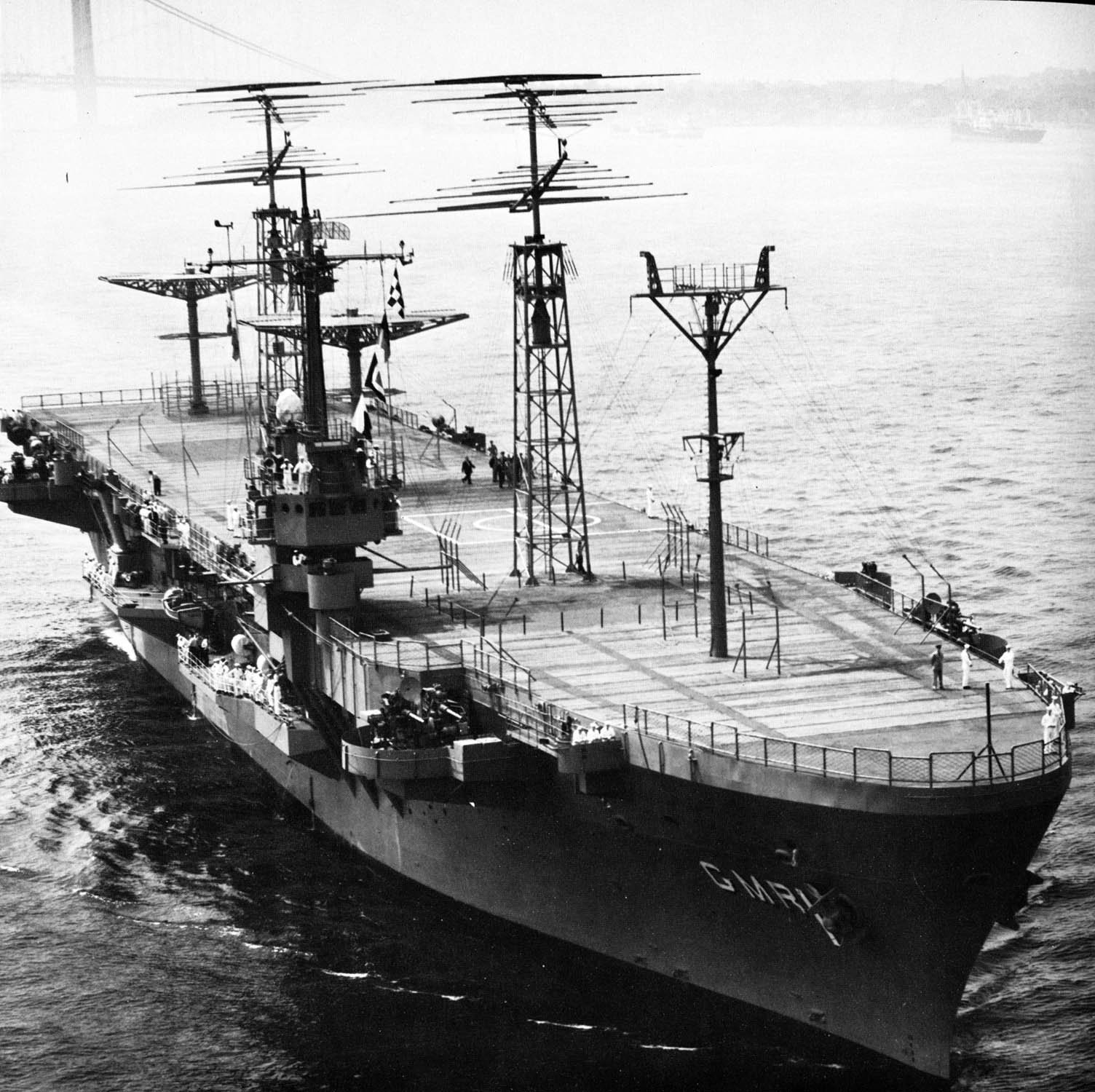 259k | USS Annapolis (AGMR-1) underway , 12 June 1964, leaving the New York Naval Shipyard, Brooklyn, N.Y., where she was converted to a Major Communications Relay Ship (June 1963 - February 1964). In the background are two Brooklyn - Staten Island Ferries. US Navy photo # USN-1103576 from the collections of the US Naval Photographic Center, Naval Station Washington, D.C. 20390 |