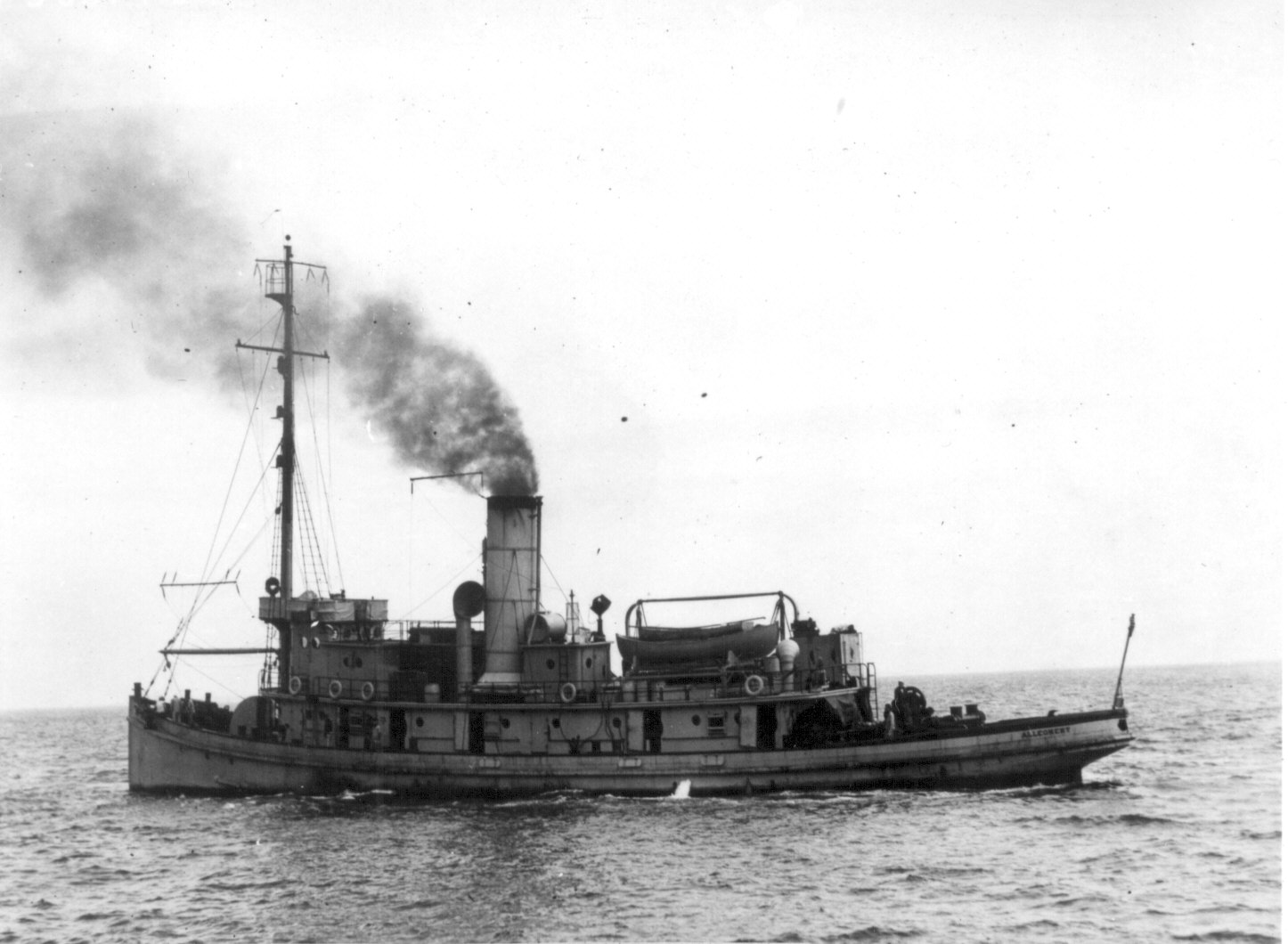 USS Allegheny (AT-19) in 1922. The tug had been holed and sunk after being struck by the propeller of the collier