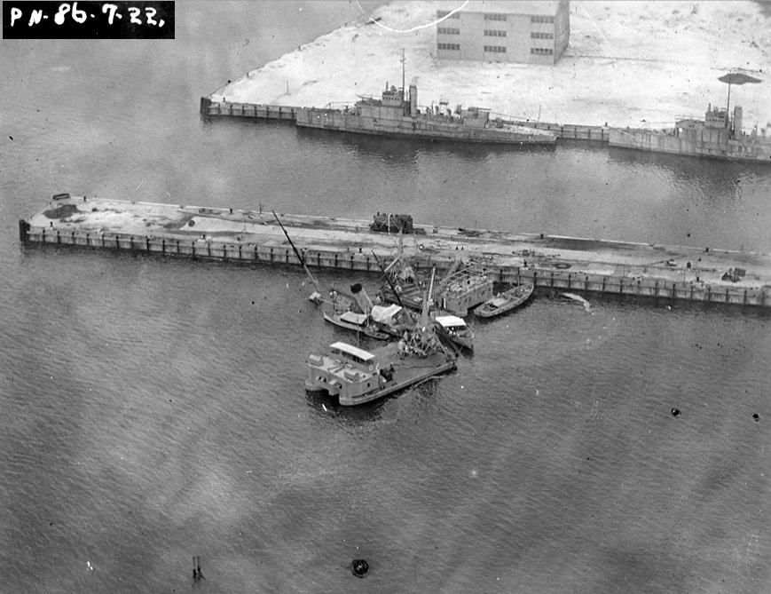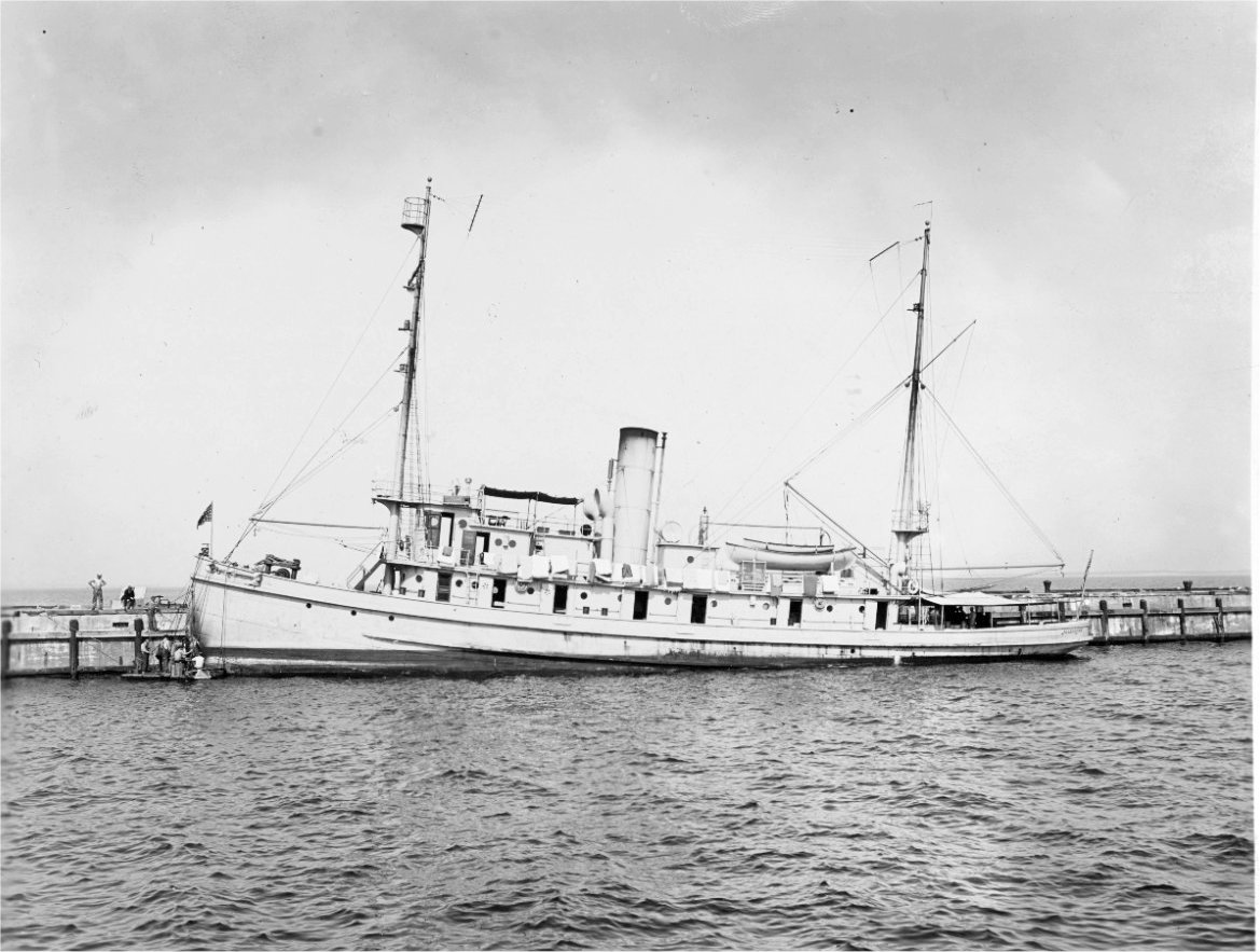 Eagle class patrol boats moored in the background and YSD-1 assisting in the refloating of the tug. US Navy and Marine Corps Museum/Naval Aviation Museum, photo #'s 1989.119.001.030, and 1989.119.001.017 as part of a post-WW1 photograph album of NAS Pensacola. |