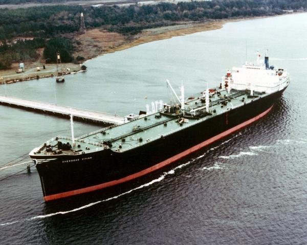 ST Overseas Vivian (AOT-1205) moored pierside, 1 January 1986, place unknown. US DOD photo # DNSC8603150