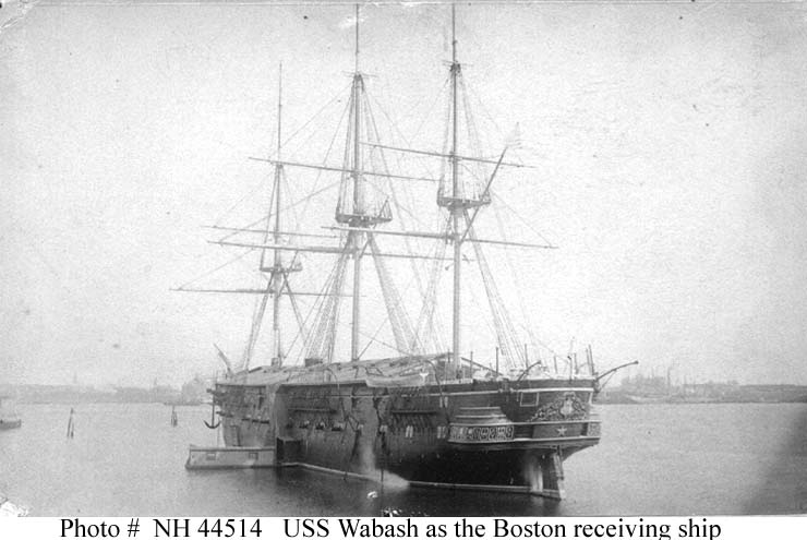 124k | USS Wabash at anchor with her open deck roofed over while serving as receiving ship at Boston, probably in the late 1870's. | Robert Hurst | |