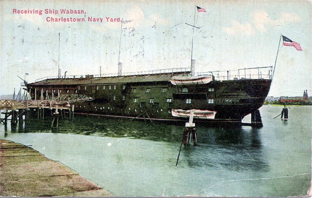 251k | Post card image of USS Wabash at Charlestown, Boston Navy Yard, while serving as receiving ship, circa 1910-1912. | Tommy Trampp | |