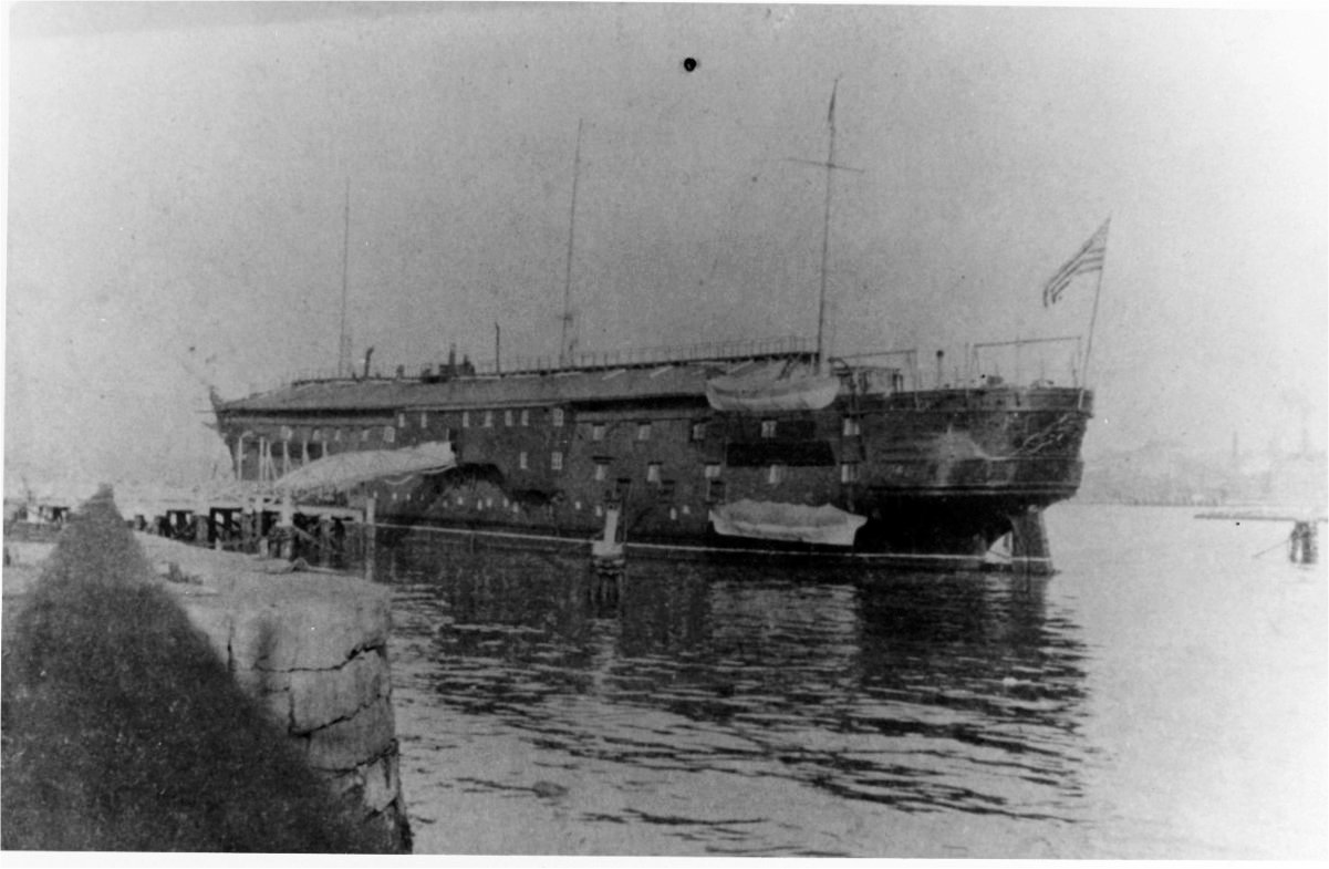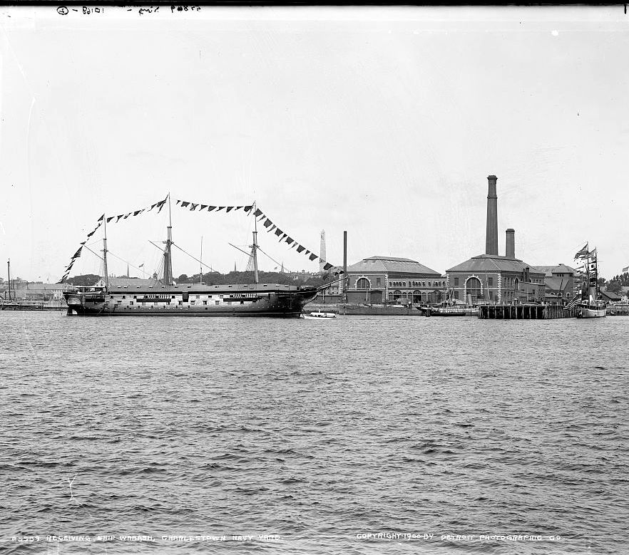 164k | USS Wabash serving as receiving ship at Charlestown (Boston Navy Yard), circa 1900.