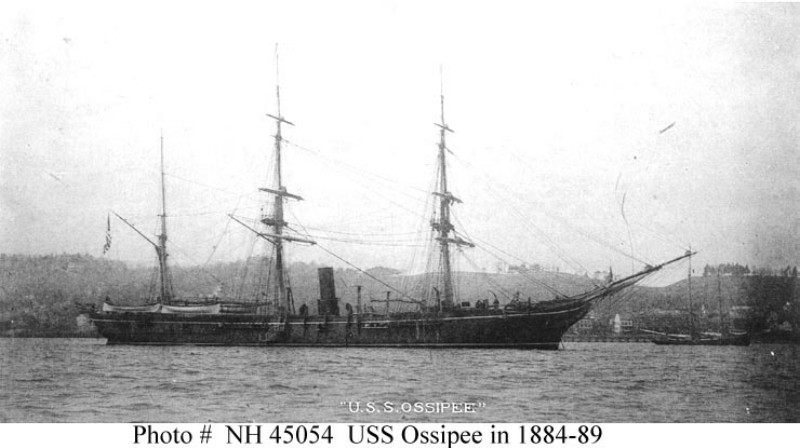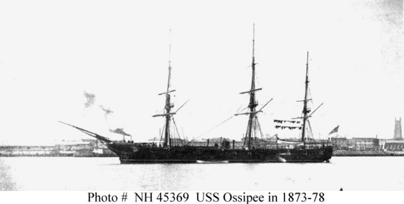 92k | USS Ossipee at anchor in her 1884-89 configuration.