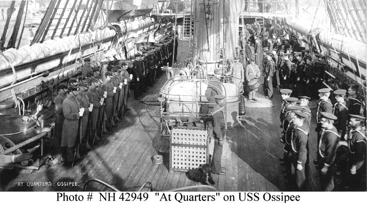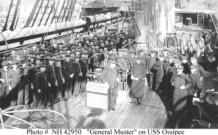 104k | "General Muster" on board USS Ossipee , circa 1887-88. The ship's Commanding Officer, CDR. William Bainbridge Hoff, is in
