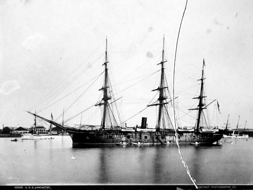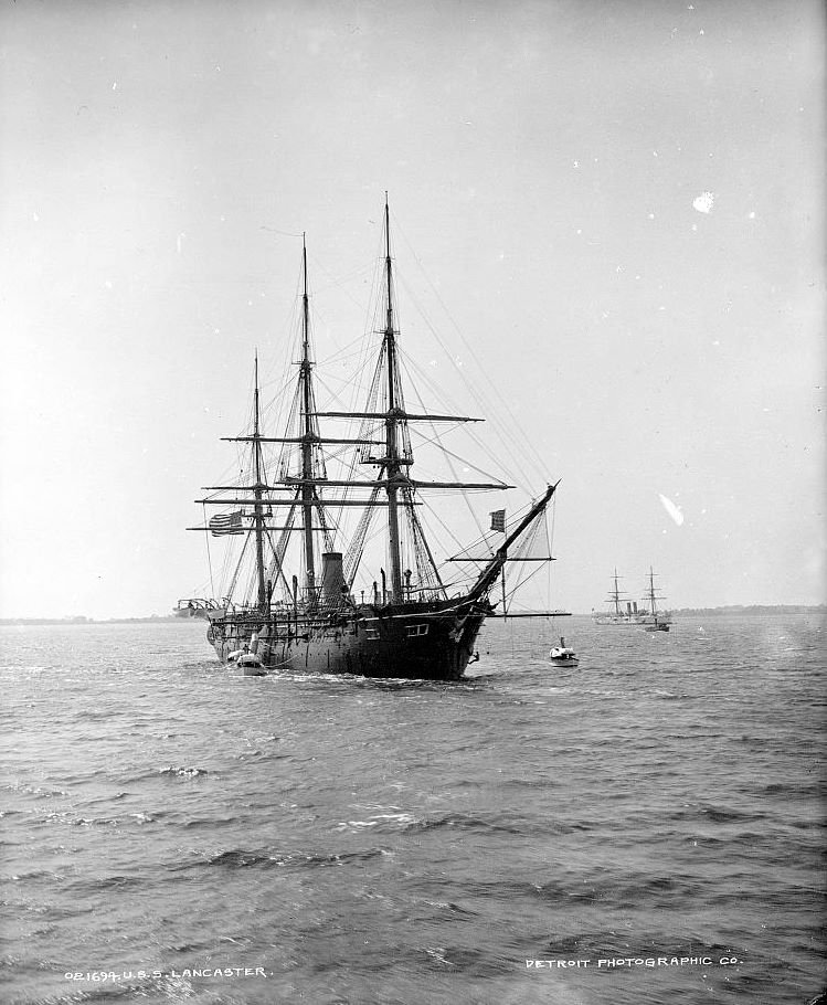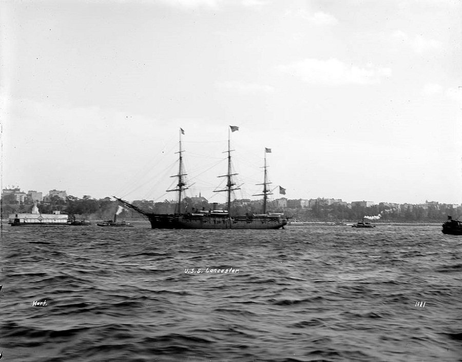 97k | USS Lancaster at anchor, circa 1890 to 1905, location unknown. Library of Congress photo # LC-D4-32290 |