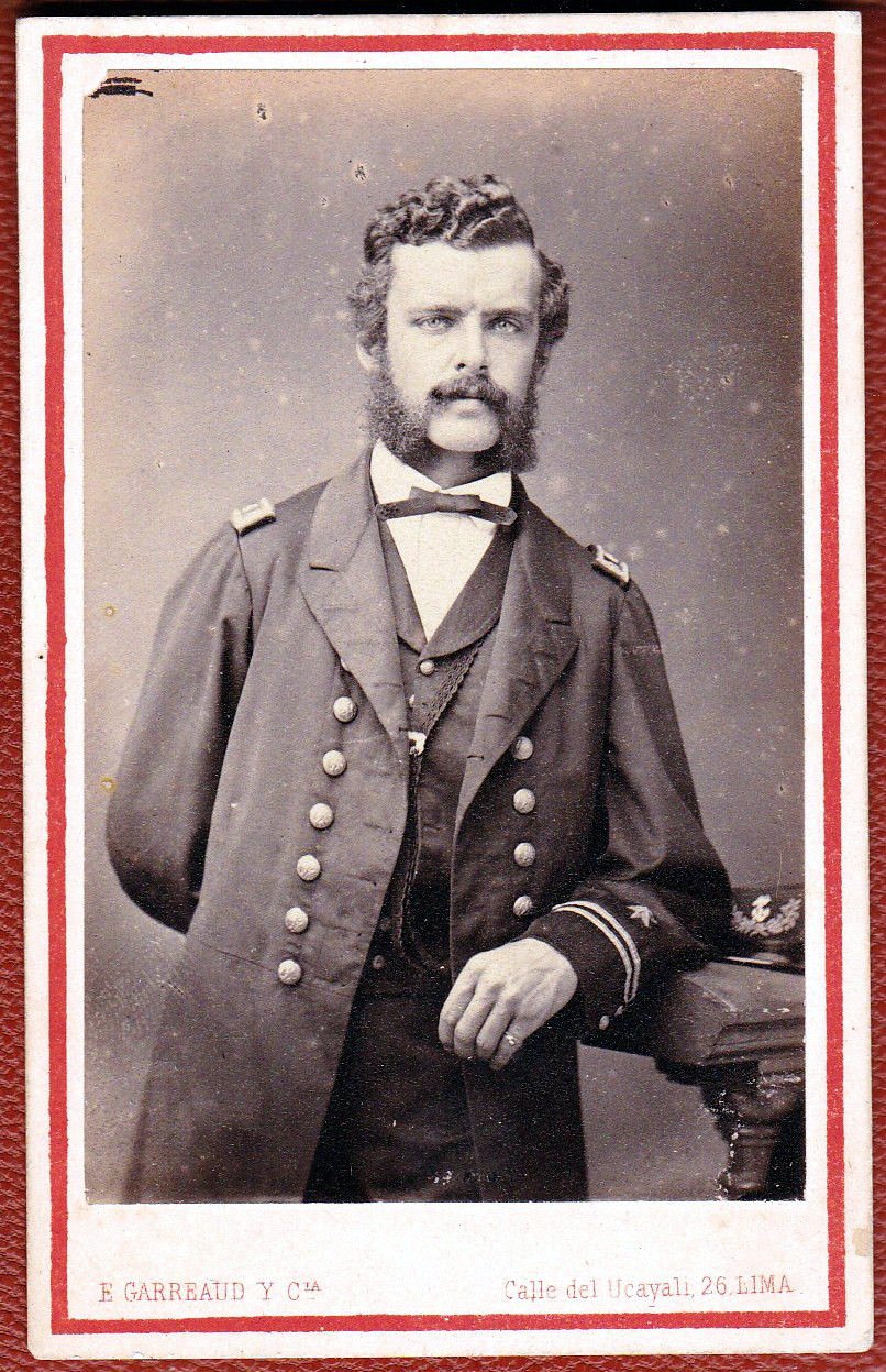 297k | Acting Volunteer Lieutenant Charles S. Coy was appointed Acting Master’s Mate, 5 October 1861, and was temporarily assigned to USRS North Carolina until 31 October 1861 where he was reassigned to USS Lancaster. Coy served aboard Lancaster until 26 January 1864. During his service aboard Lancaster he was promoted to Acting Ensign, 16 January 1863, followed by promotion to Acting Master on 27 January 1864. Reassigned to USS Saginaw from February 1864 until 3 April 1866. During his tenure aboard Saginaw he was promoted to Acting Volunteer Lieutenant on 12 June 1865. When he was detached from Saginaw he was ordered to return to the United States. Upon his arrival, 12 June 1866, he was granted four months leave of absence prior to his honorable discharge on 12 October 1866. The portrait was taken in Peru in 1864 during a port of call while Saginaw while was assigned to the Pacific Squadron protecting the interests of the U.S. endangered by Confederate activity and by European interference in Mexico. | Bill Gonyo | |