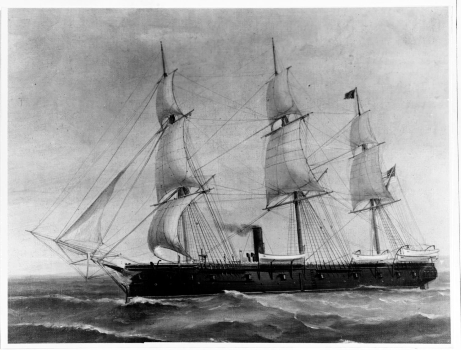 hatch railings, and large compass platform over the helm. Catalog #: NH 94303 US Naval History and Heritage Command photo# NH 04303. Description: Courtesy of The U.S. Army Military History Institute, Carlisle Barracks, PA. Collection of R.W. Hackenburg RG100s.32. |