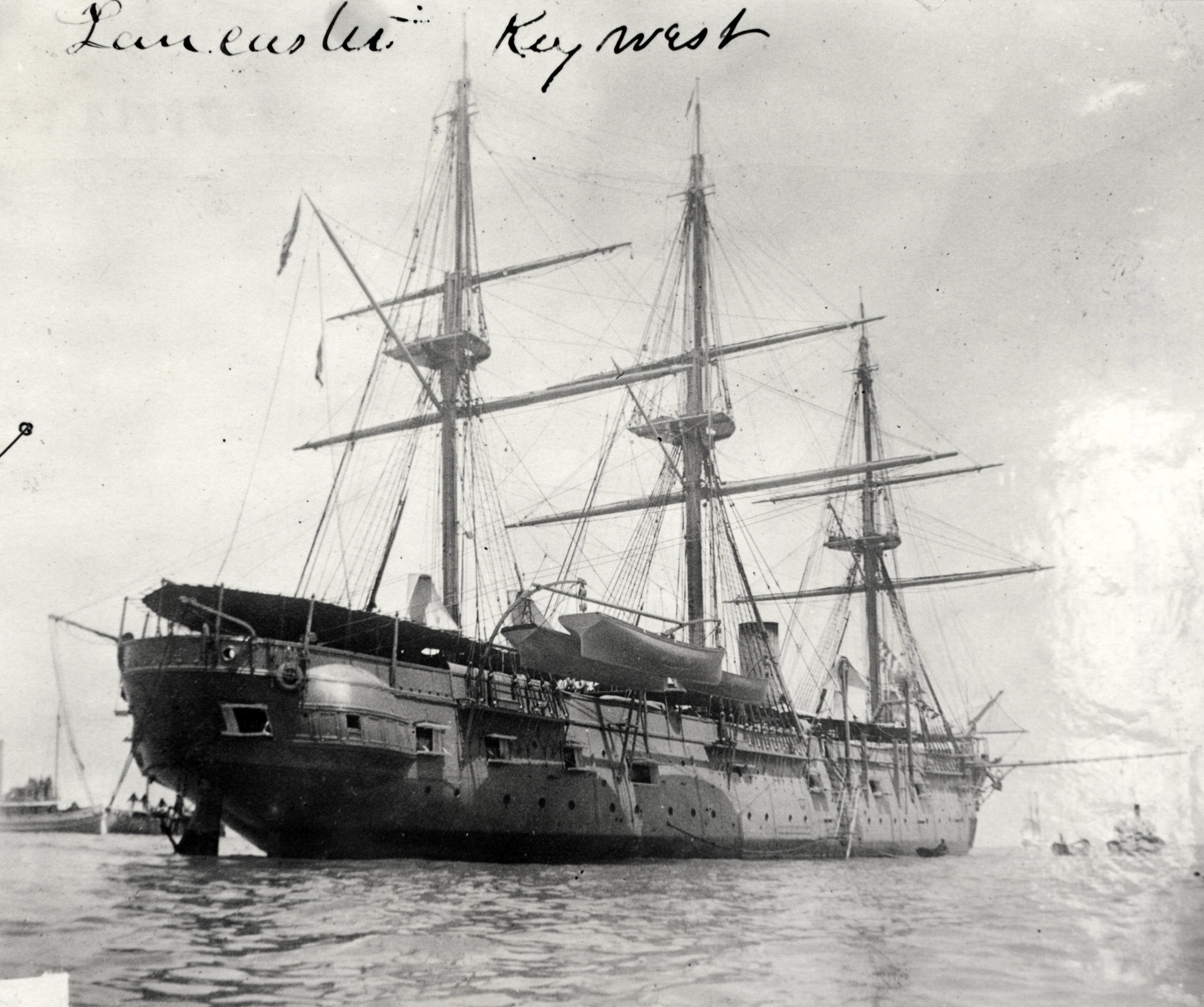 145k | USS Lancaster at anchor in the harbor at Key West. FL., in 1898 while serving as station ship during the Spanish American War.