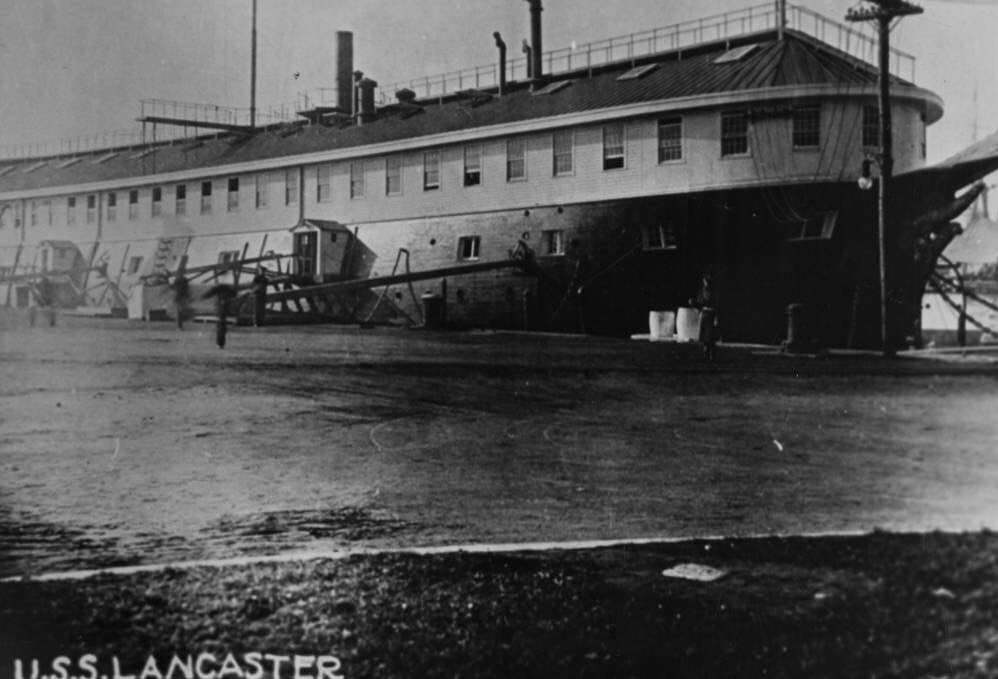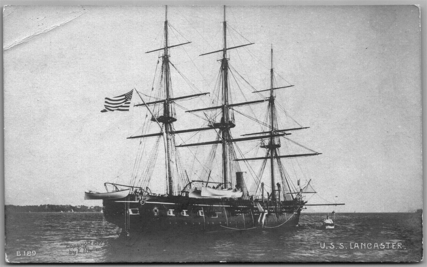 96k | USS Lancaster at the Philadelphia Navy Yard circa 1904. Lancaster served as receiving ship for Naval personnel