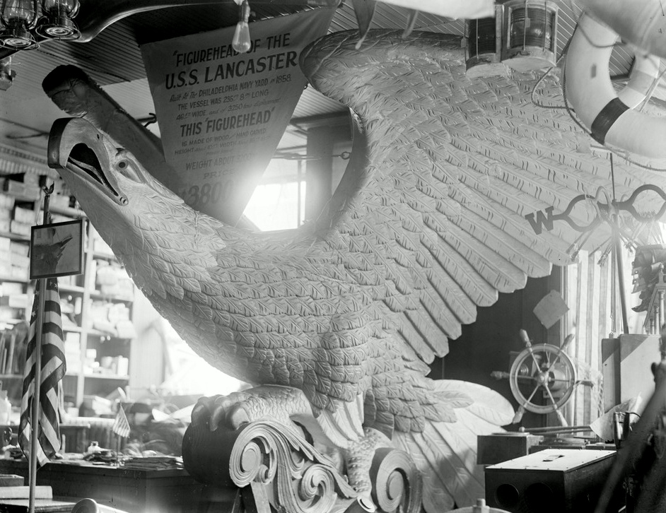 280k | The Golden Eagle figurehead from USS Lancaster by John Haley Bellamy, carver (Amer. 1836 -1914), on display at the Mariners