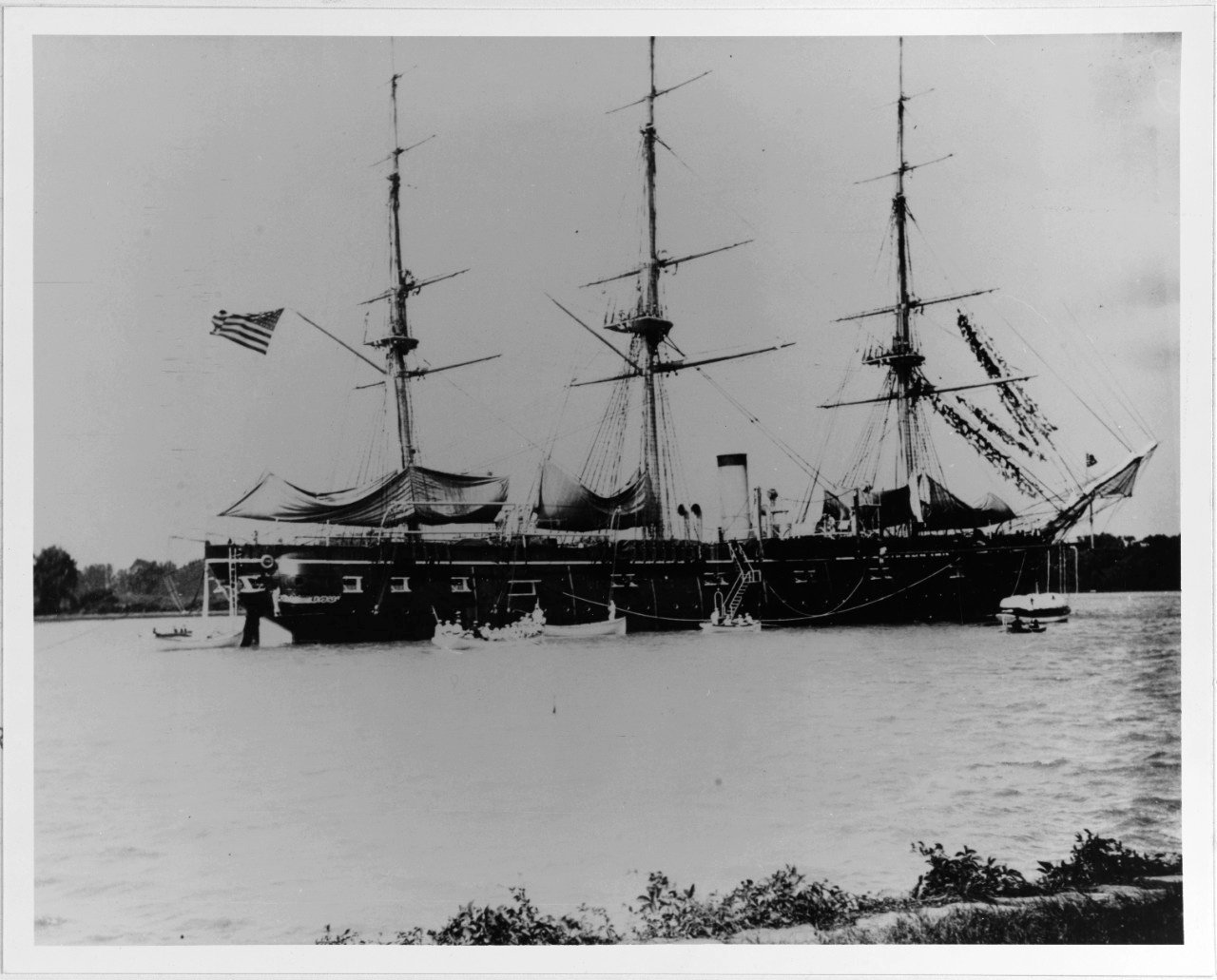 125k | USS Lancaster ready for re-launching at Portsmouth Navy Yard, N.H. in 1881 during her reconstruction. Note the large ram