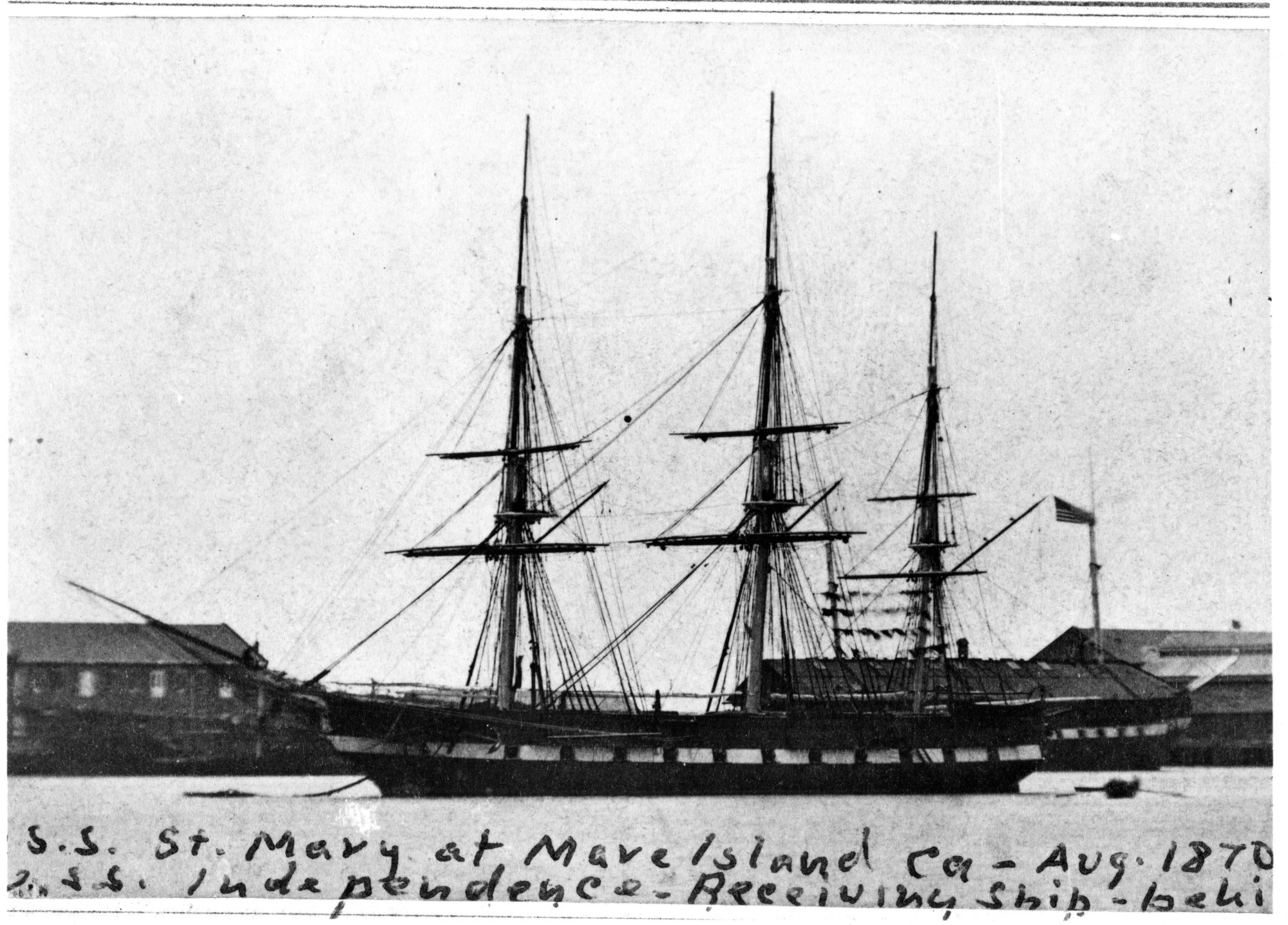 533k | USS St. Mary's at anchor, off Mare Island Navy Yard in August 1870. Note USS Independence in the background. | Darryl Baker | |