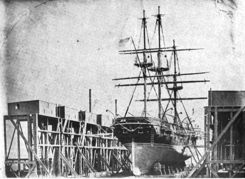 129k | USS St. Mary's in the first dry dock established at Mare Island Navy Yard, circa 1854. The sectional dry dock was built in
