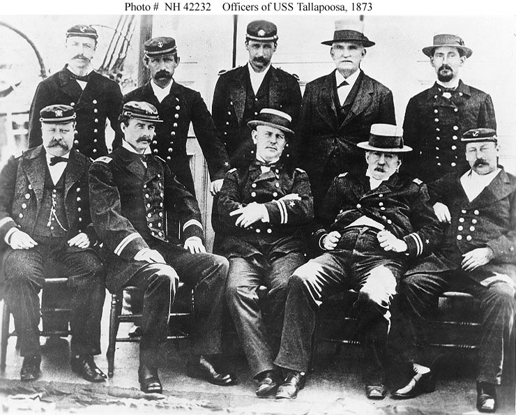 125k | USS Tallapoosa Ship's officers, 1873. Her Commanding Officer, Lieutenant David G. McRitchie, is seated in the center. Photo courtesy of Admiral William D. Leahy, December 1938. US Naval History and Heritage Command photo # NH 42232. |