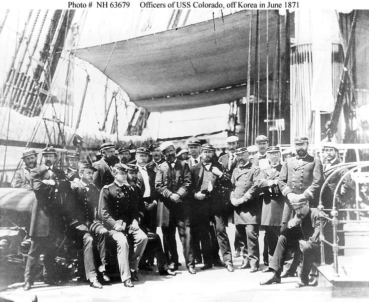 59k | USS Colorado at anchor in Korean waters during the expedition to Korea in May 1871.at anchor in 1871 during the United States Expedition to Korea. Photo from "Marine Amphibious Landing in Korea, 1871", by Carolyn A.Tyson. Washington, DC: Naval Historical Foundation. | Robert Hurst | |