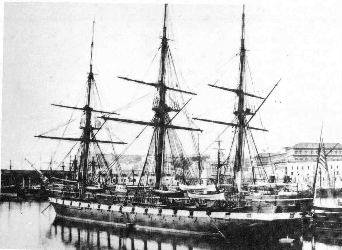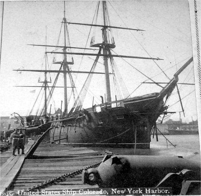 188k | USS Colorado moored in an unidentified European port, probably during her assignment to the European Squadron from 1865 to 1867. Photo courtesy of INRO (International Naval Research Organization). |