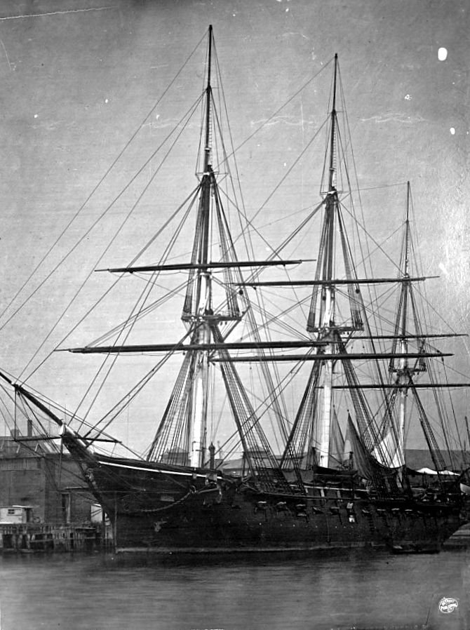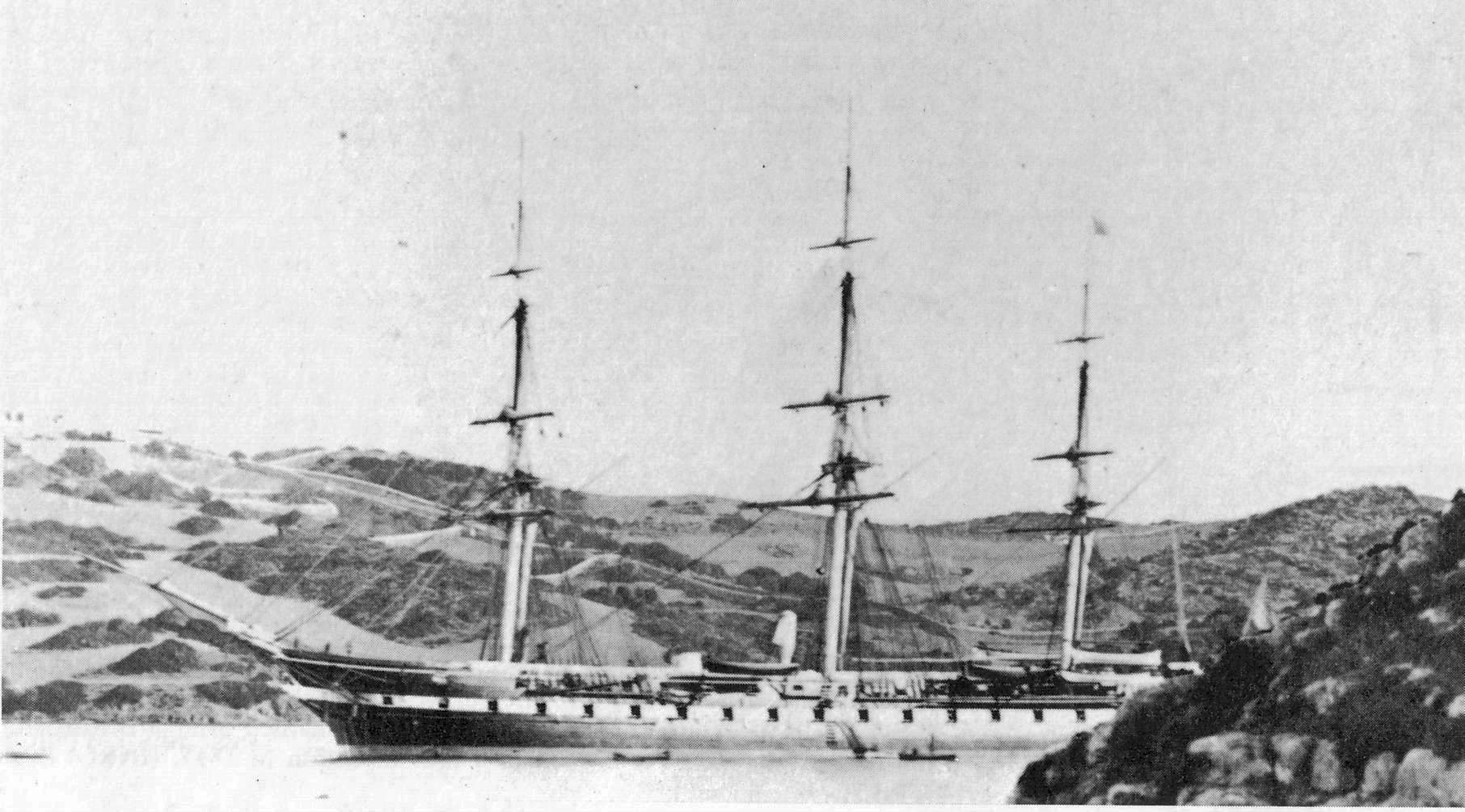 310k | USS Colorado moored at Port Mahon, Minorca, about 1866. US Naval History and Heritage Command |