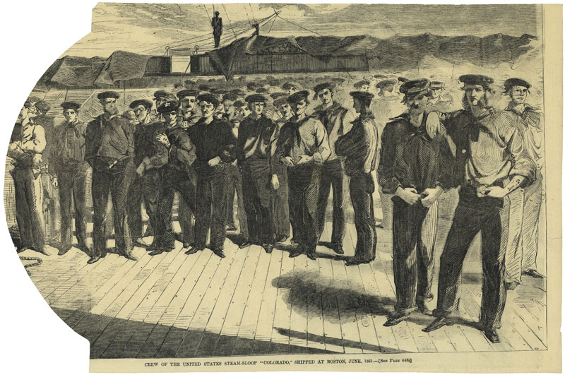 144k | Illustration of the crew of the screw-frigate USS Colorado preparing to ship out of Boston in 1861 from Harper’s Weekly. | Bill Gonyo | |