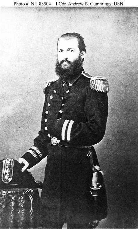 80k | Andrew Boyd Cummings joined the steam sloop USS Richmond during her 1860-1861 Mediterranean deployment. After Richmond returned to the United States in mid-1861 she, with Cummings as her First Lieutenant and Executive Officer, undertook active service against the Confederacy in the Gulf of Mexico, most notably the April 1862 capture of New Orleans and subsequent operations up the Mississippi River. Specifically commended for his performance, he was promoted to Lieutenant Commander in July 1862. Andrew Boyd Cummings was gravely wounded during Richmond's 14 March 1863 attempt to pass the batteries at Vicksburg, Mississippi and died four days later. | Bill Gonyo | |