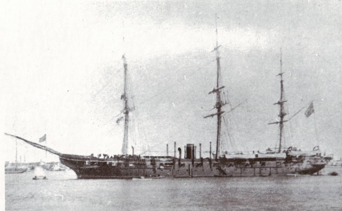 231k | USS Richmond at Port Said. after departing Norfolk 11 January 1879 while enroute to Yokohama via the Suez Canal. Photo by H. Arnoux. Photo from the collection of the late Antoni Blasi, with permission to publish them, by Camil Busquets.This photo, and several hundred more, can be found in Camil Basquets book "50 Años de Retrato Naval Militar (1870-1920)", ("50 Years of Naval Photography,") published in 2010. |