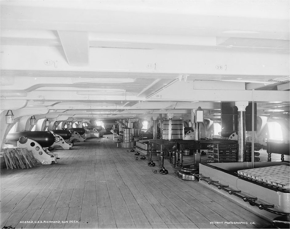 121k | USS Richmond gun deck, circa 1890-1901 | Library of Congress photo # 4a14697v Detroit Photographic Co. Collection | |