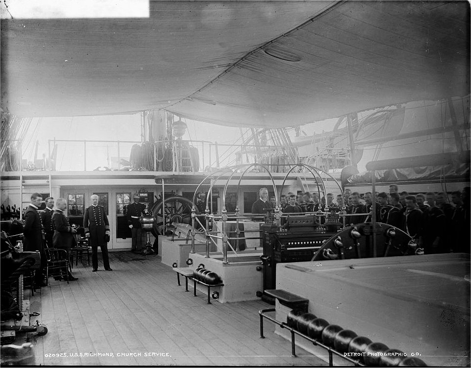 152k | USS Richmond church services, circa 1890-1901 | Library of Congress photo # 4a14699v Detroit Photographic Co. Collection | |